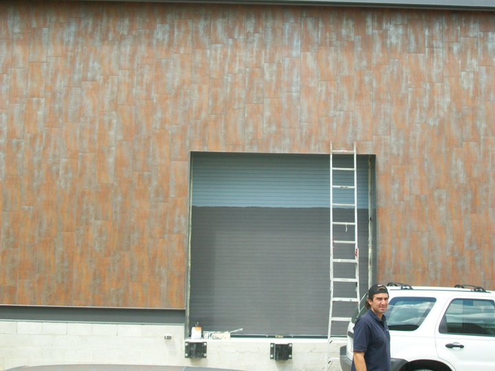 | The roll-up door will be painted a dark grey to match all the rest of the building's colour scheme. The colour scheme is a combination of black, olive green, and dark grey. |